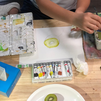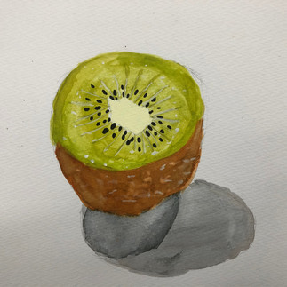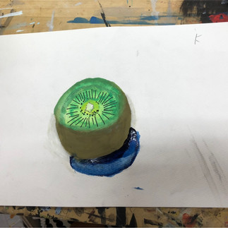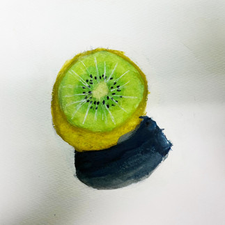 Very beautiful green kiwi. If you use the green of the paint set as it is, the green will be slightly different. Mix the magical colors to get a kiwi color! There was a child who sprained his right hand, but he gave up watercolor painting with many tools and tried digital painting on the iPad. Adversity is your chance. I got a new technique.