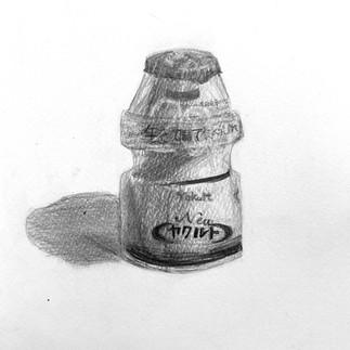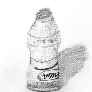 よく見るとヤクルトの形はおもしろい形をしています。へっこんだり斜めになっていたり。まずは触って感触を確かめ、絵描きの人がやっているのをなんとなく見たことのある、「鉛筆で測る方法」をいつものように話します。これは何度も、何度でも話します。